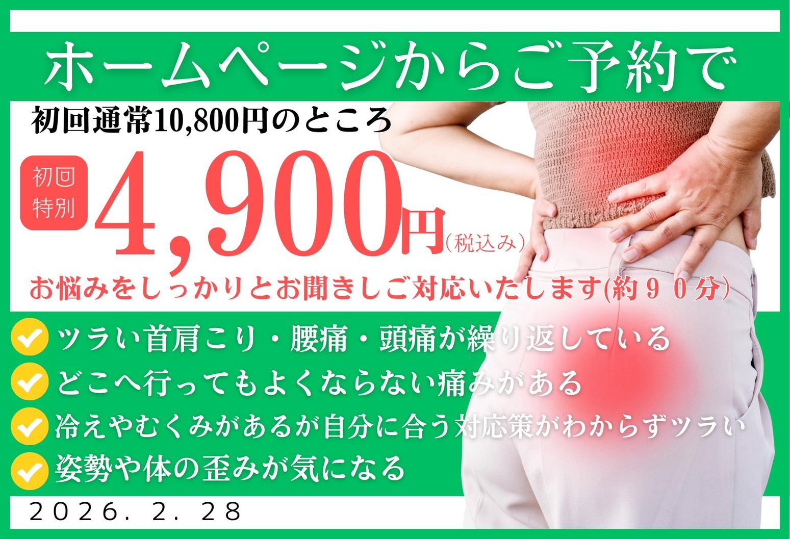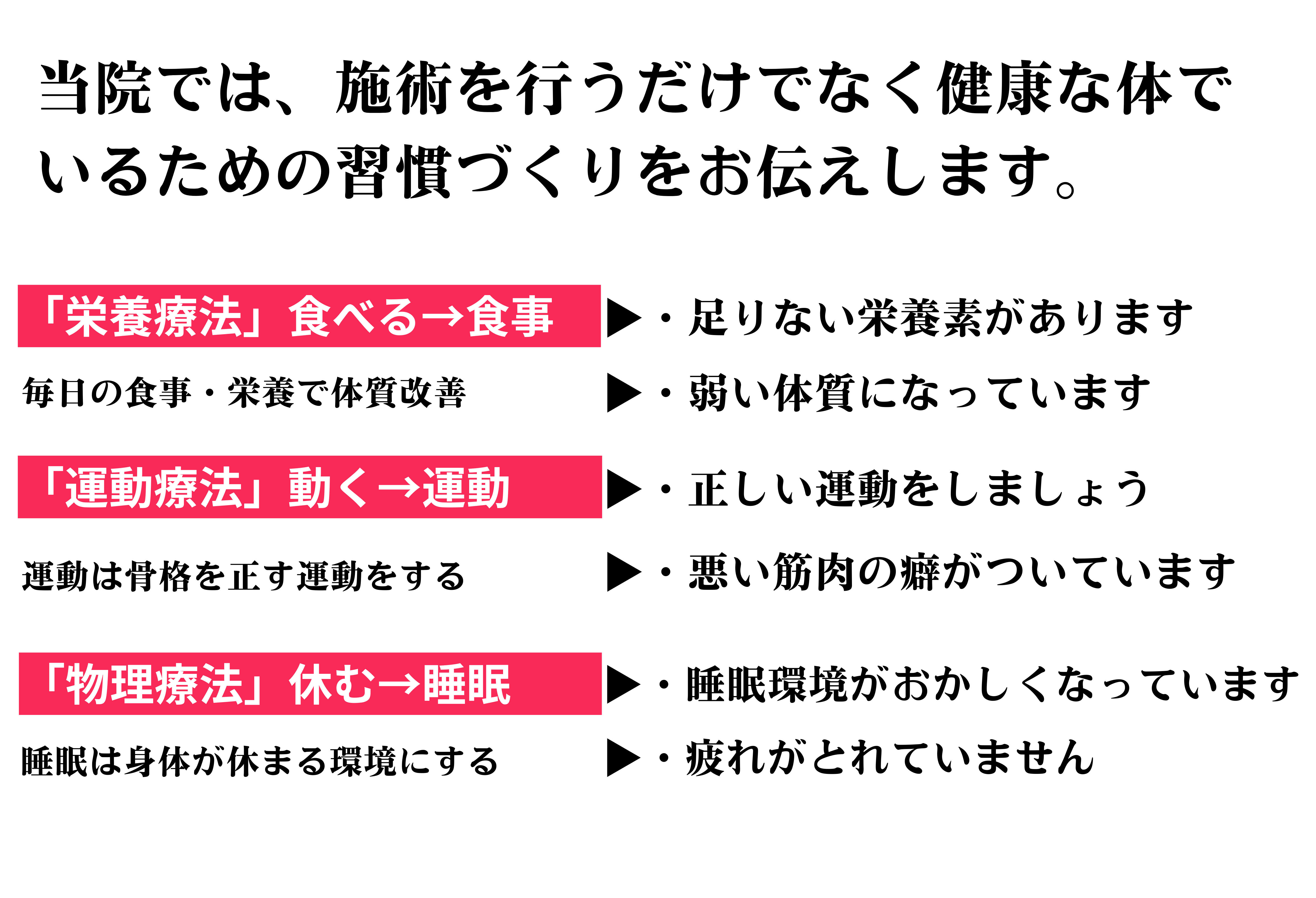 何度も繰り返してしまう、どこへ行ってもよくならない痛みや不調にお悩みでしたら、一度ご相談ください。